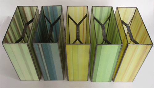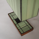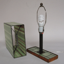 "Airbrush lamp" Our own technique of airbrushing glass enamels on glass .. The base is made of steel with a warm red/brown patina finish and a mixture of concrete and glass frits , achieving an organic stone / crystal look. Sometimes, as in the sample below,the base has mosaic insert. These unique lamps are precious and will compliment any decor. Custom work available . 4" x 10" x 17 1/2" Colors will vary. Check with us before ordering. $750